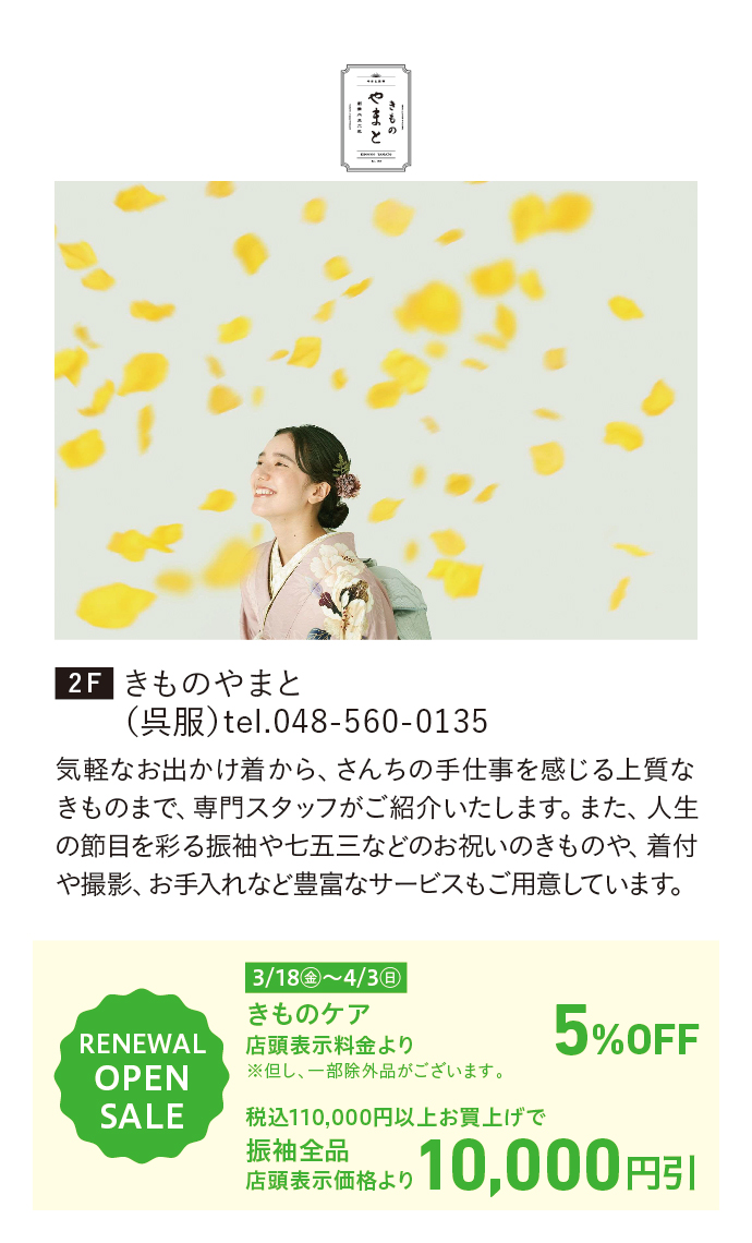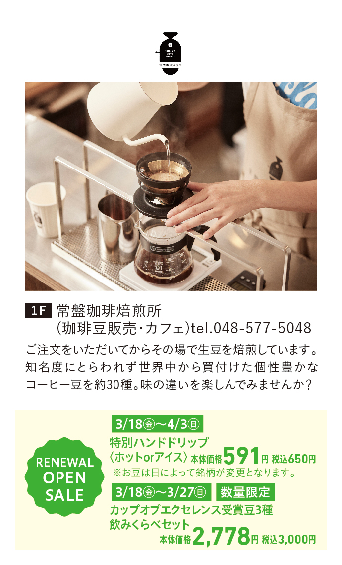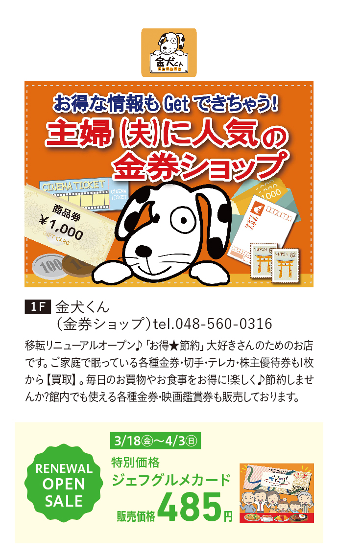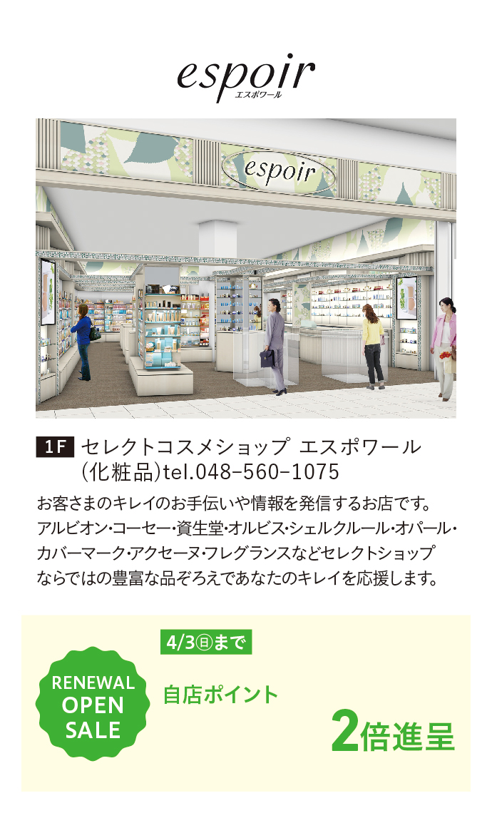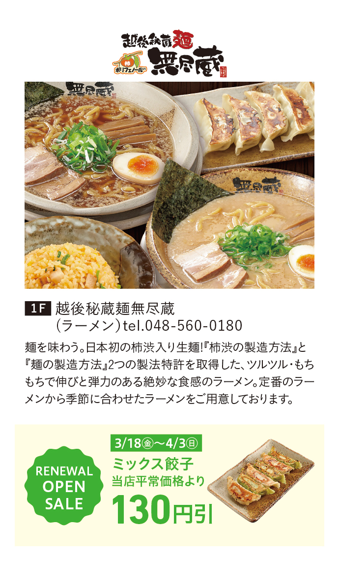 リニューアルのお店1 クローヴ グリーンパークストピック 常磐珈琲 セレクトコスメショップ エスポワール リニューアルのお店2 & chouette 無尽蔵 きものやまと エースコンタクト リニューアルのお店3 ムラサキスポーツ サーティワンアイスクリーム 金犬くん ランジェノエル リニューアルのお店4 がってん承知の助 チャイハネ more coming soon 注釈 NEWSHOPへ 3.18リニューアル TOPへ イオンモール羽生ホームページへ